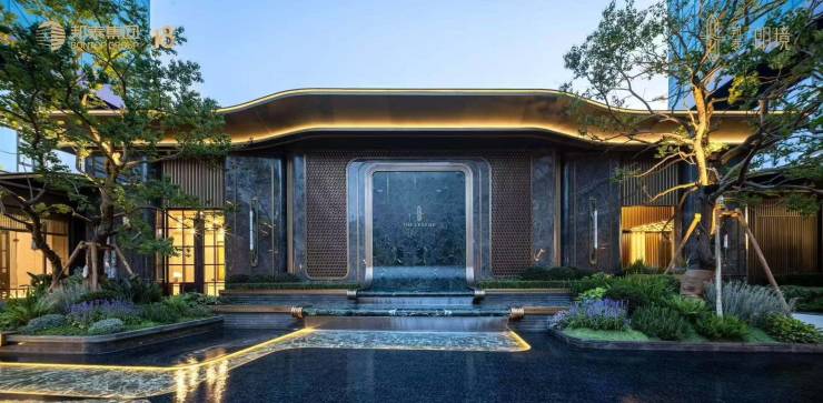 2.约1100㎡水景+千万级奢石大门!近70米宽、约7.1米高,比肩奢华酒店!