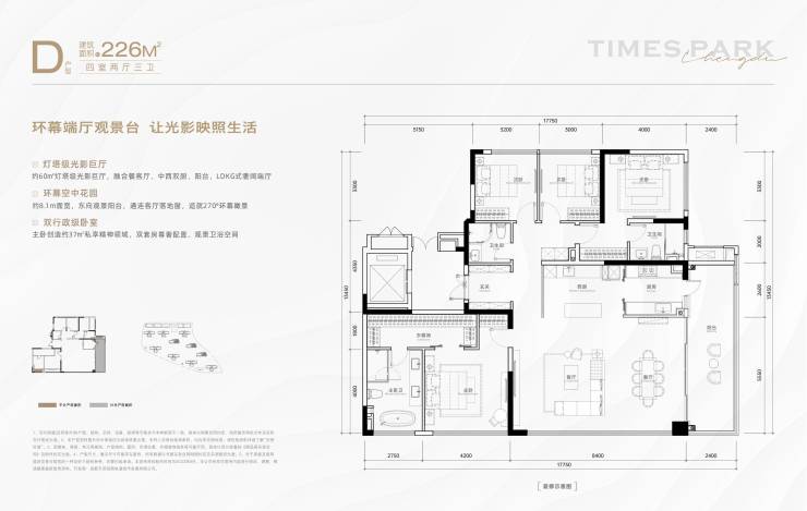 D户型/建面约226㎡四室两厅三卫