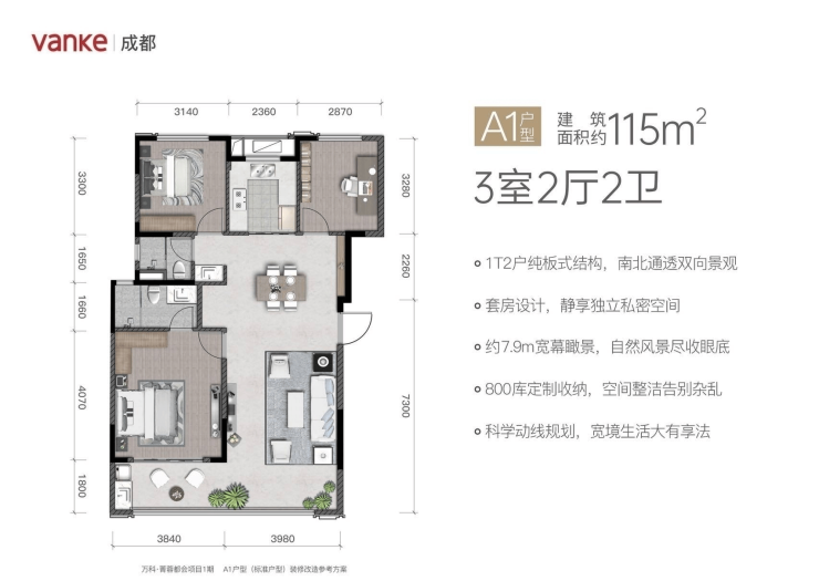 产品:建面115-135㎡精装洋房,单价1.15-1.7万/㎡,1梯2户纯板式设计