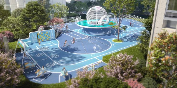 3.全龄活动空间,星空主题儿童空间、活力慢跑步道等针对不同年龄的活动场所。