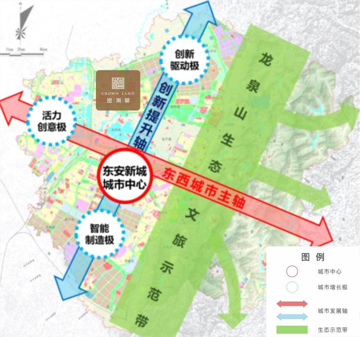 崑崙御x 拾光谷——高品质生活中心▶立于城市轴线之上东进主轴:崑崙御x 拾光谷立于东进主轴成洛大道之上,择址龙泉驿区副中心西河,为龙泉驿区规划“一心三极、两轴一带”的创新驱动极,发展丰富的产业园区,享成渝双城发展及成都东进双重红利。