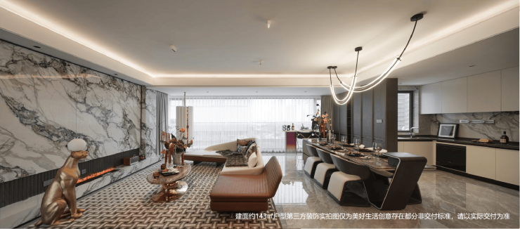 116㎡三房得房率83%,143㎡四房实现7.2米横厅