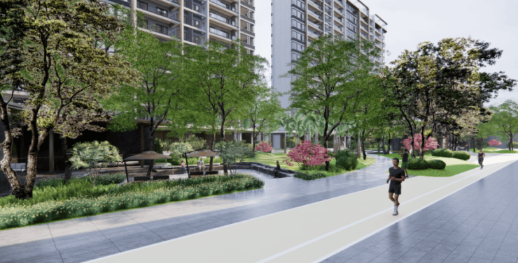 社区内打造248米环湖跑道+640㎡儿童乐园