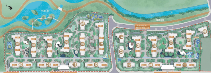 "一核双轴四坊"布局,800米半径覆盖全龄配套。