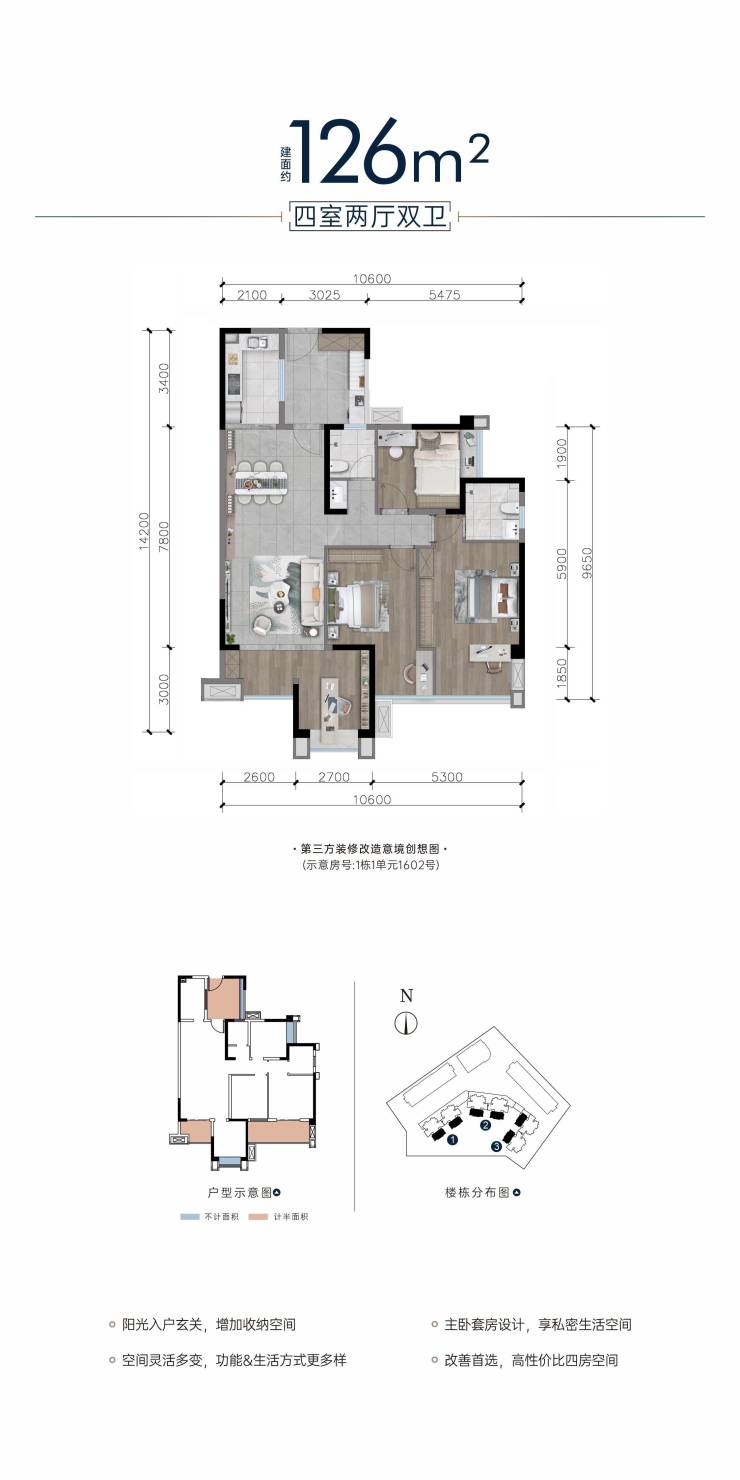 阳光入户玄关,增加收纳空间;改善首选,高性价比四房空间