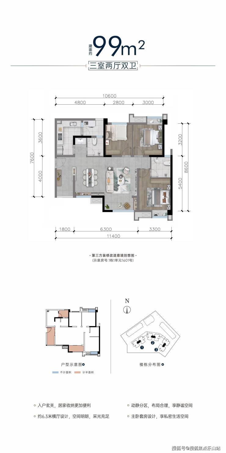 半围合式布局,超大楼间距;